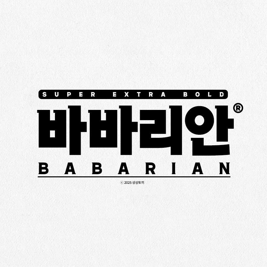 엑스트라 볼드 타입의 한글 폰트 엑스트라 볼드 타입의 한글 폰트 <바바리안>을 제공합니다. 강한 인상이 필요한 타이틀에 적합한 폰트입니다.